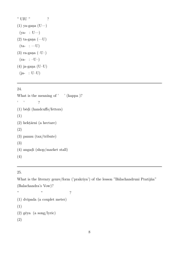 \texttelugu{"కప్పం" అనగా ఒక సామంతుడు సార్వభౌమునికి చెల్లించే పన్ను లేదా సుంకం. (3) "పన్ను" అనేది "కప్పం"కి సరైన పర్యాయపదం. Quick Tip: - 'Kappaṁ' means tax or tribute.