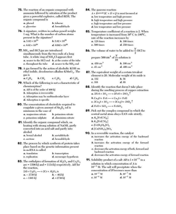 - Chemistry: The Chemistry section was considered slightly easier than the other two sections. The Chemistry section also examined Organic, Inorganic and Physical Chemistry concepts, and overall Organic Chemistry was the most prevalent area represented. In particular, the section consisted of reasonable organic chemistry questions that emphasized topics of General Organic Chemistry and reaction mechanisms.