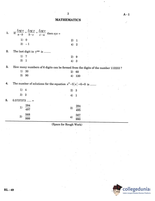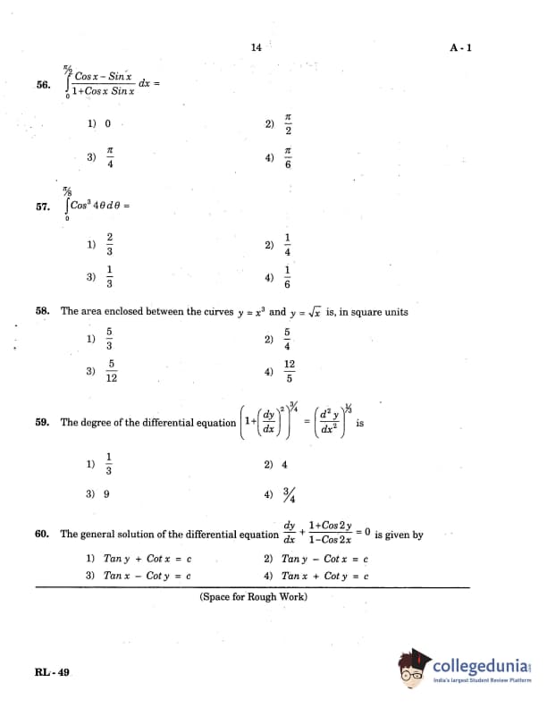 | COMEDK UGET 2017 Mathematics Question Paper | COMEDK UGET 2017 Mathematics Answer Key |
