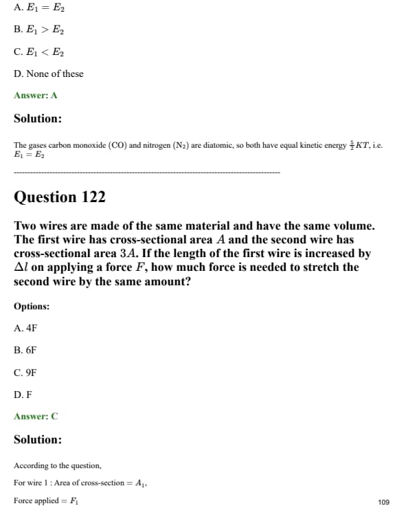 The gases carbon monoxide (CO) and nitrogen at the same temperature have kinetic energies \( E_1 \) and \( E_2 \), respectively. Then,