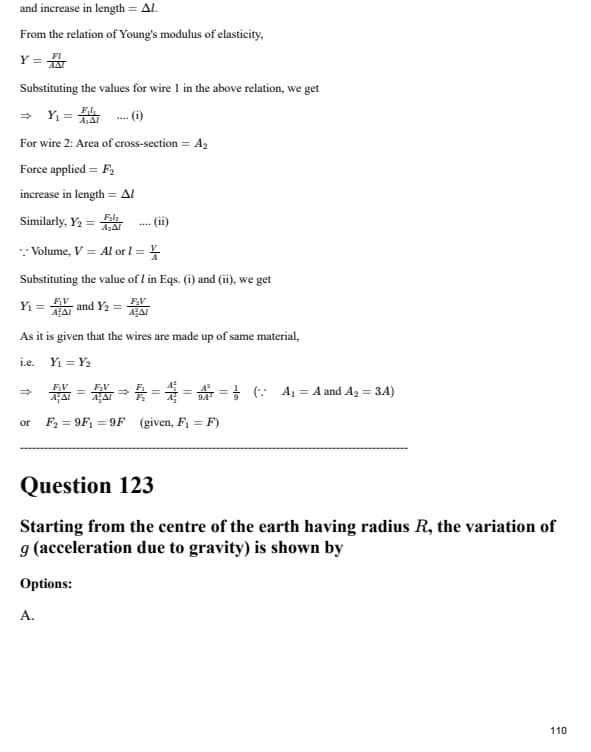 Two wires are made of the same material and have the same volume. The first wire has cross-sectional area \( A \) and the second wire has cross-sectional area \( 3A \). If the length of the first wire is increased by \( \Delta l \) on applying a force \( F \), how much force is needed to stretch the second wire by the same amount?