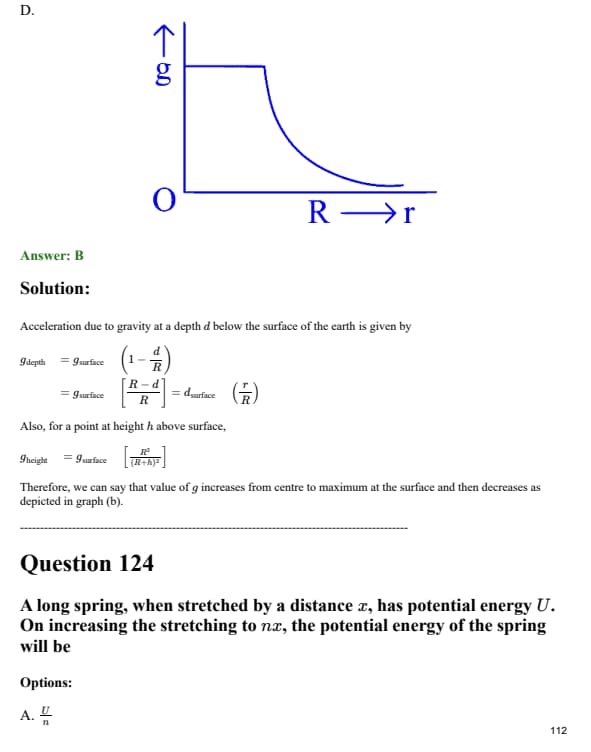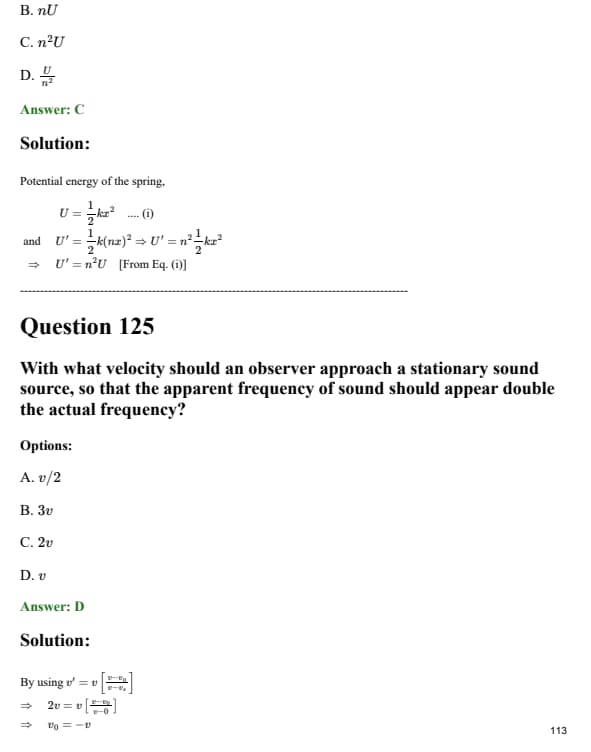 A long spring, when stretched by a distance \( z \), has potential energy \( U \). On increasing the stretching to \( n \) times, the potential energy of the spring will be