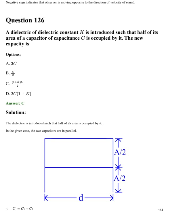 A dielectric of dielectric constant \( K \) is introduced such that half of its area of a capacitor of capacitance \( C \) is occupied by it. The new capacity is