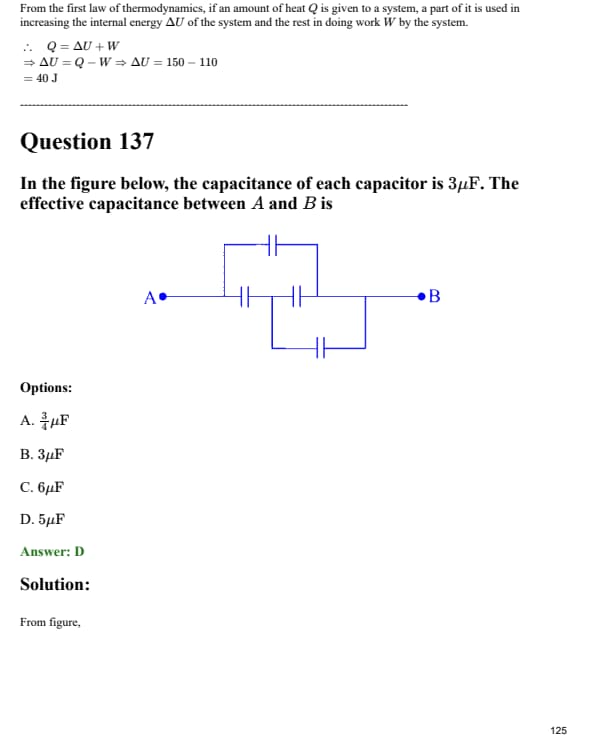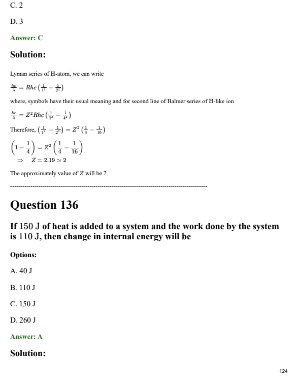 If 150 J of heat is added to a system and the work done by the system is 110 J, then the change in internal energy will be
