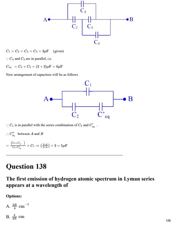 In the figure below, the capacitance of each capacitor is \( 3 \mu F \). The effective capacitance between A and B is