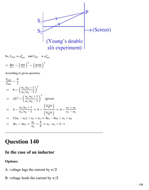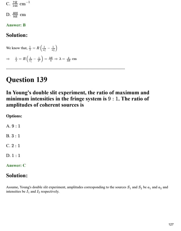 In Young's double slit experiment, the ratio of maximum and minimum intensities in the fringe system is 9:1. The ratio of amplitudes of coherent sources is