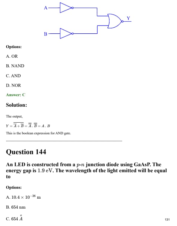 An LED is constructed from a p-n junction diode using GaAsP. The energy gap is 1.9 eV. The wavelength of the light emitted will be equal to