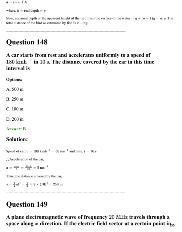 A car starts from rest and accelerates uniformly to a speed of 180 km/h in 10 s. The distance covered by the car in this time interval is