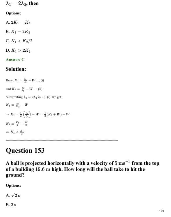 Let \( K_1 \) be the maximum kinetic energy of photoelectrons emitted by light of wavelength \( \lambda_1 \) and \( K_2 \) corresponding to wavelength \( \lambda_2 \). If \( \lambda_1 = 2\lambda_2 \), then