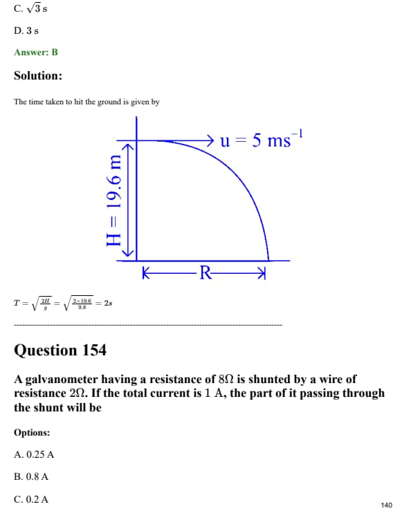 A ball is projected horizontally with a velocity of \( 5 \, m/s \) from the top of a building 19.6 m high. How long will the ball take to hit the ground?