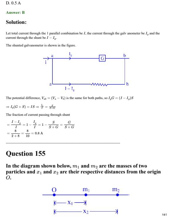 A galvanometer having a resistance of \( 8 \, \Omega \) is shunted by a wire of resistance \( 2 \, \Omega \). If the total current is 1 A, the part of it passing through the shunt will be