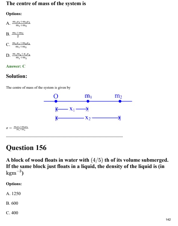 In the diagram shown below, \( m_1 \) and \( m_2 \) are the masses of two particles and \( x_1 \) and \( x_2 \) are their respective distances from the origin \( O \). The centre of mass of the system is