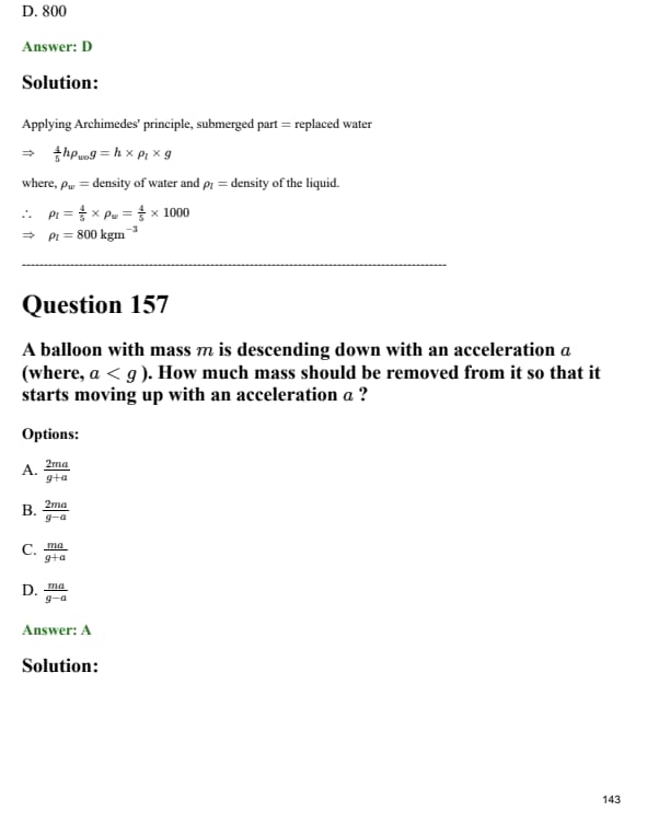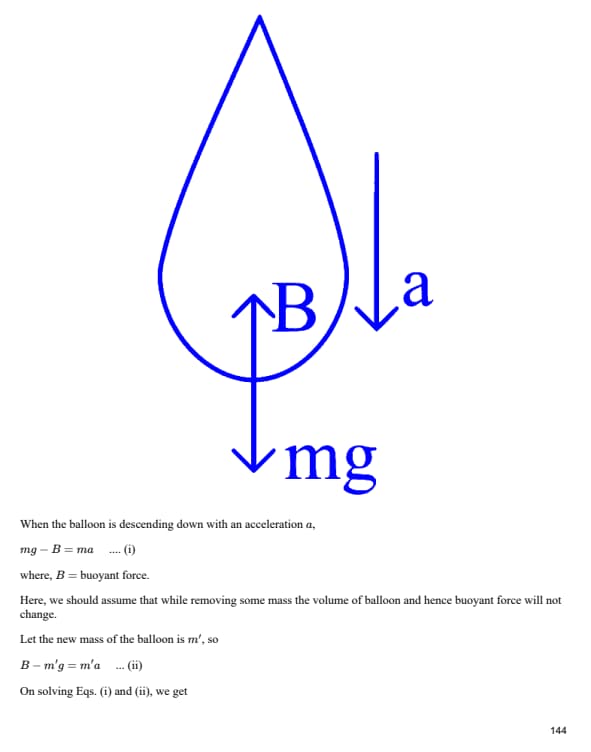 A balloon with mass \( m \) is descending down with an acceleration \( a \) (where, \( a < g \)). How much mass should be removed from it so that it starts moving up with an acceleration \( a' \)?