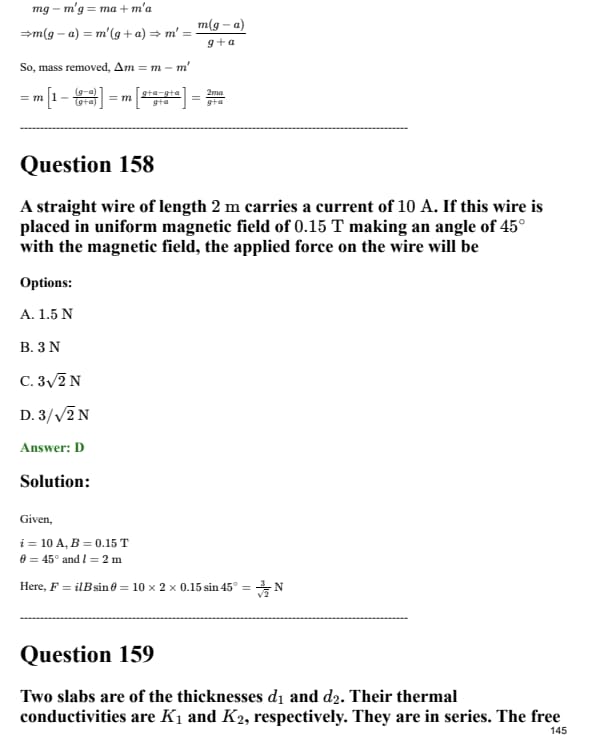A straight wire of length 2 m carries a current of 10 A. If this wire is placed in a uniform magnetic field of 0.15 T making an angle of \( 45^\circ \) with the magnetic field, the applied force on the wire will be