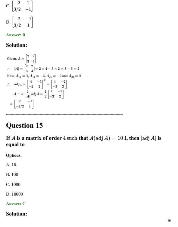 If \[ A = \begin{bmatrix} 2 & 2 \\ 3 & 4 \end{bmatrix}, \quad \text{then} \quad A^{-1} \text{ equals to} \]