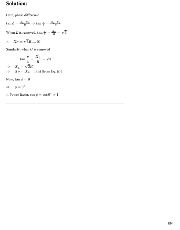 In an electrical circuit \( R, L, C \) and AC voltage source are all connected in series. When \( L \) is removed from the circuit, the phase difference between the voltage and the current in the circuit is \( \frac{\pi}{3} \). If instead \( C \) is removed from the circuit, the phase difference is again \( \frac{\pi}{3} \). The power factor of the circuit is