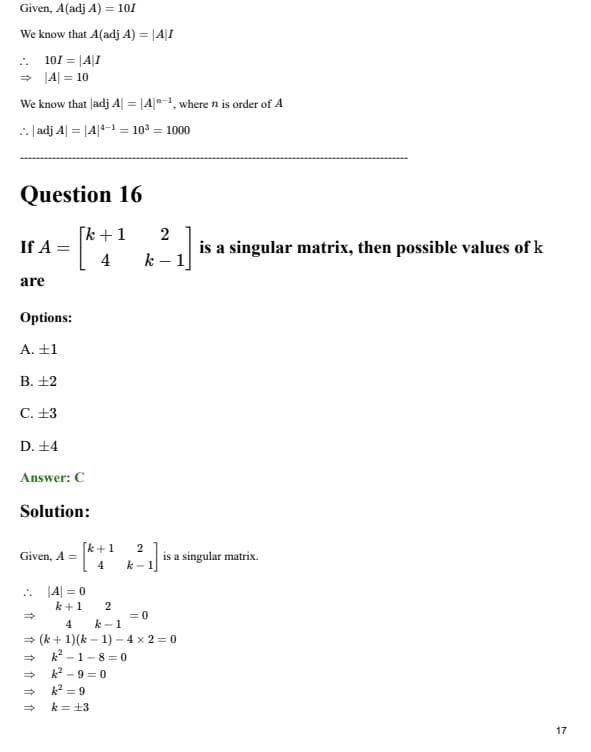 If \[ A = \begin{pmatrix} k + 1 & 2 \\ 4 & k - 1 \end{pmatrix} \text{ is a singular matrix, then the possible values of } k \text{ are} \]