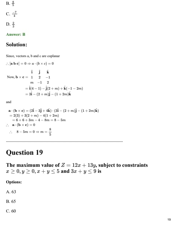 If the vectors \[ \mathbf{a} = 2\hat{i} - 3\hat{j} + 4\hat{k}, \quad \mathbf{b} = \hat{i} + 2\hat{j} - \hat{k}, \quad \mathbf{c} = m\hat{i} - \hat{j} + 2\hat{k} \]