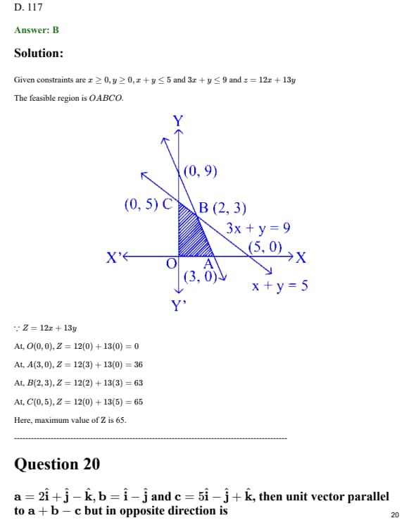 The maximum value of \( Z = 12x + 13y \), subject to constraints \[ x \geq 0, \quad y \geq 0, \quad x + y \leq 5, \quad 3x + y \leq 9 \]