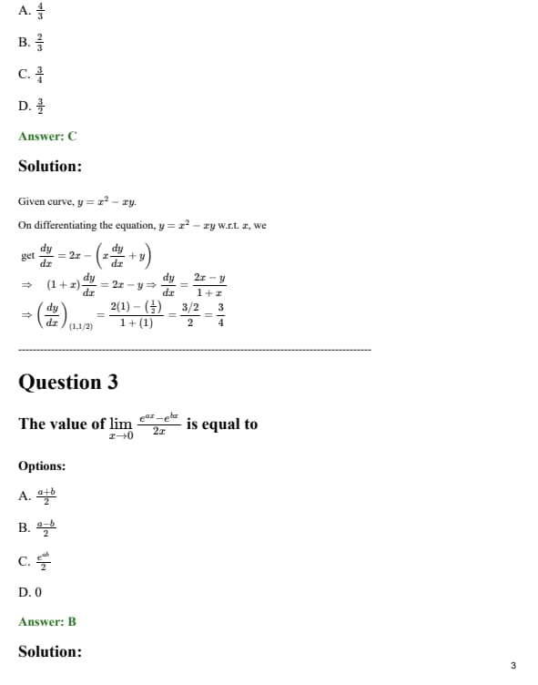 The slope of the tangent to the curve, \( y = x^2 - xy \) at \( (1, \frac{1}{2}) \) is