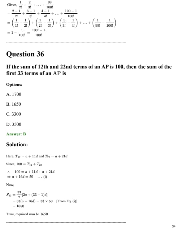If the sum of 12th and 22nd terms of an AP is 100, then the sum of the first 33 terms of an AP is