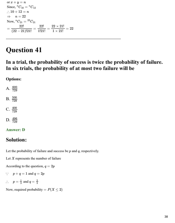 In a trial, the probability of success is twice the probability of failure. In six trials, the probability of at most two failures will be