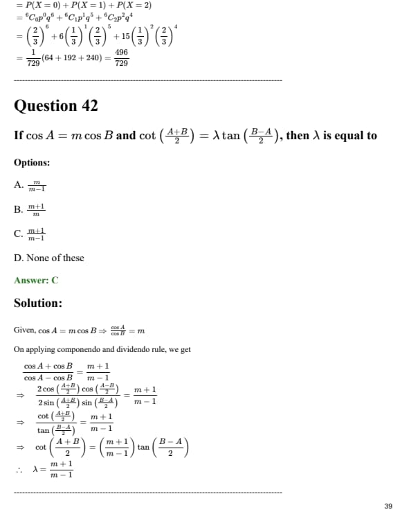 If cos A = m cos B and cot((A + B) / 2) = λ tan((B - A) / 2), then λ is equal to