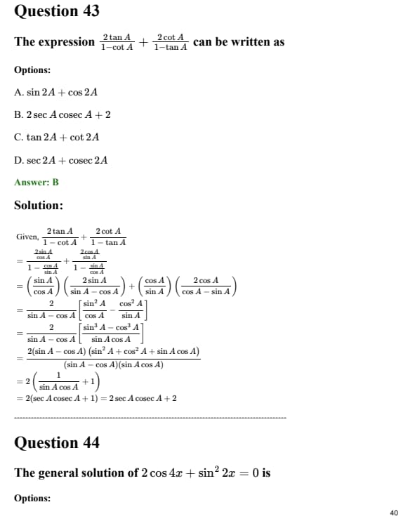 The expression \( \frac{2 \tan A}{1 - \cot A} + \frac{2 \cot A}{1 - \tan A} \) \text{ can be written as