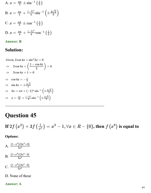 The general solution of 2 cos(4x) + sin²(2x) = 0 is
