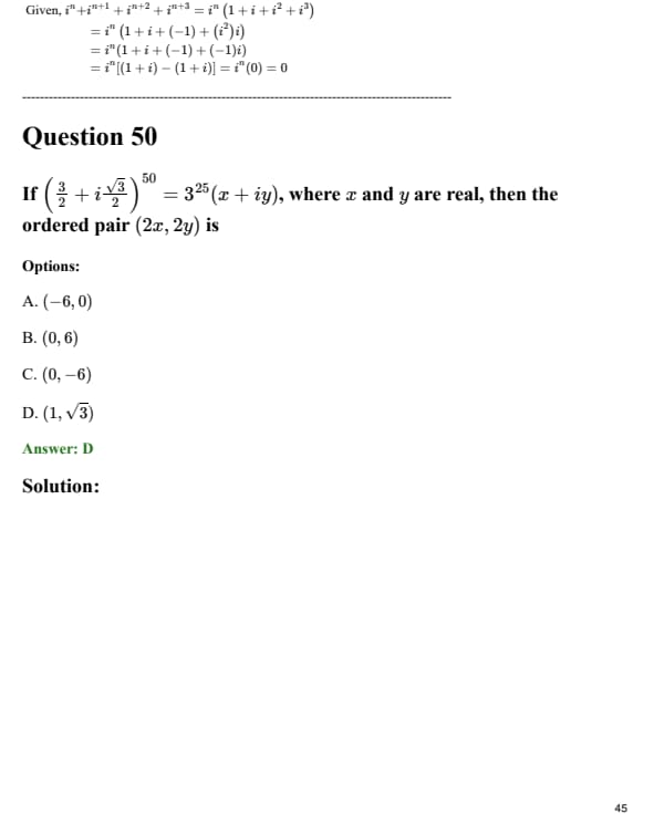 If \( \left( \frac{3}{2} + i \frac{\sqrt{3}}{2} \right)^{50} = 3^{25}(x + iy) \), where \(x\) and \(y\) are real, then the ordered pair \((2x, 2y)\) is
