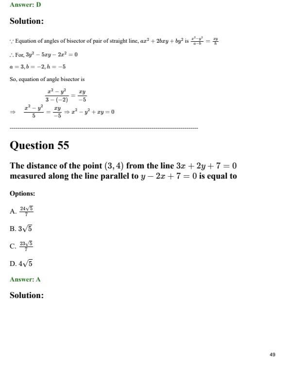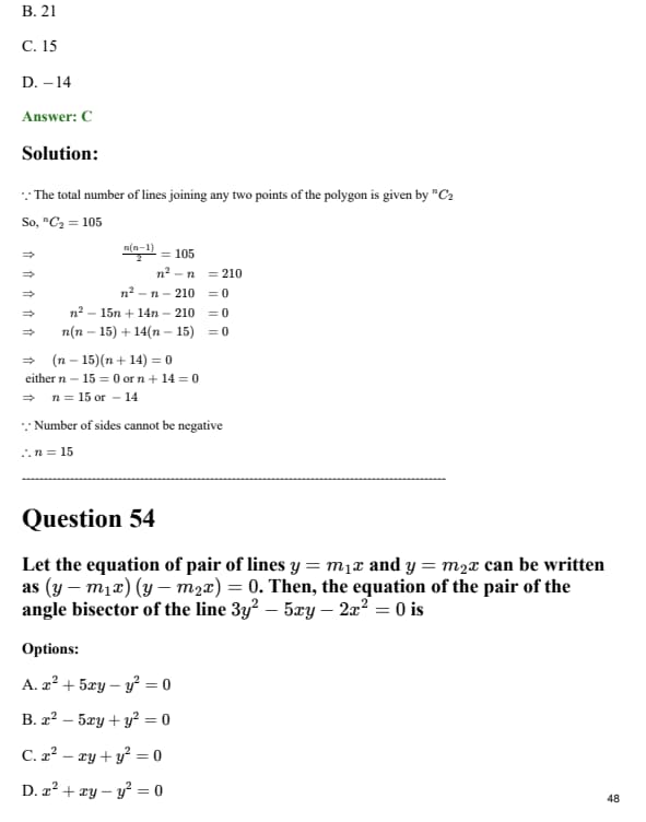 Let the equation of pair of lines \( y = m_1x \) and \( y = m_2x \) be written as \( (y - m_1x)(y - m_2x) = 0 \). Then, the equation of the pair of the angle bisector of the line \( 3y^2 - 5xy - 2x^2 = 0 \) is