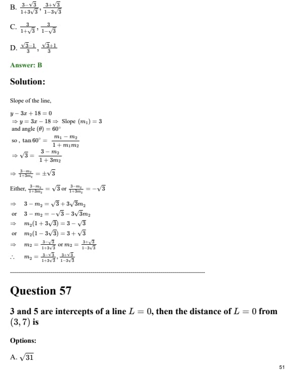 The slope of lines which makes an angle \(60^\circ\) with the line \(y - 3x + 18 = 0\) is