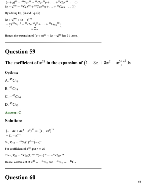 The total number of terms in the expansion of \( (x + y)^{60} + (x - y)^{60} \) is