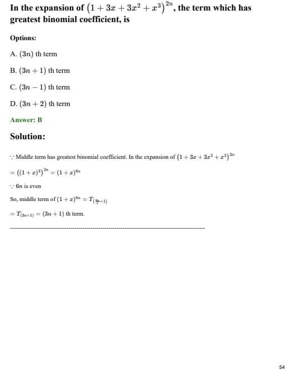 In the expansion of \( (1 + 3x + 3x^2 + x^3)^{2n} \), the term which has the greatest binomial coefficient, is