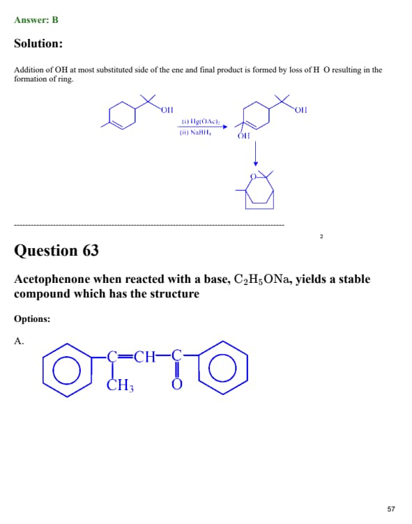 Acetophenone when reacted with a base, \( C_6H_5ONa \), yields a stable compound which has the structure