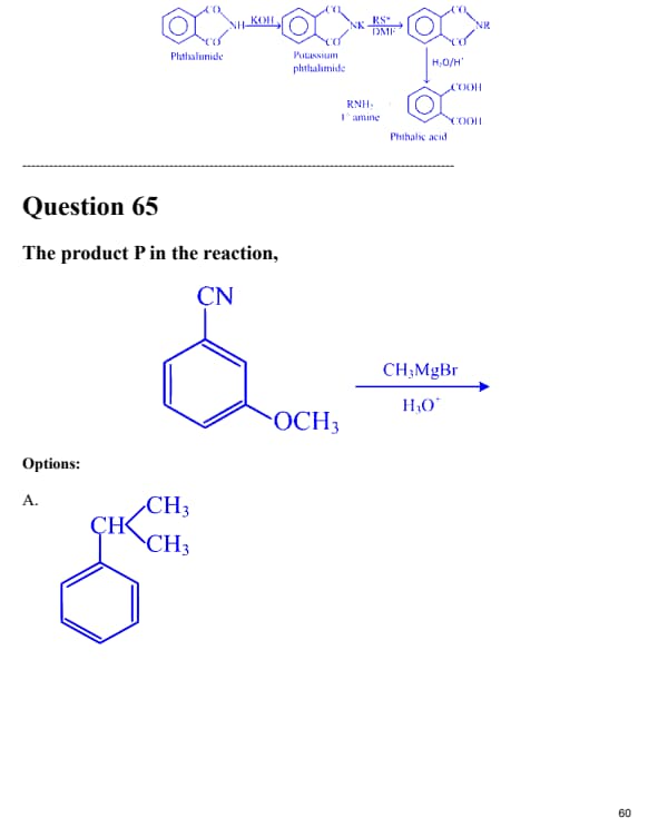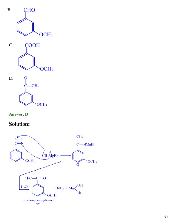 \[ CN \, C_6 \, H_5 \, OCH_3 \xrightarrow{CH_3MgBr} H_2O \]