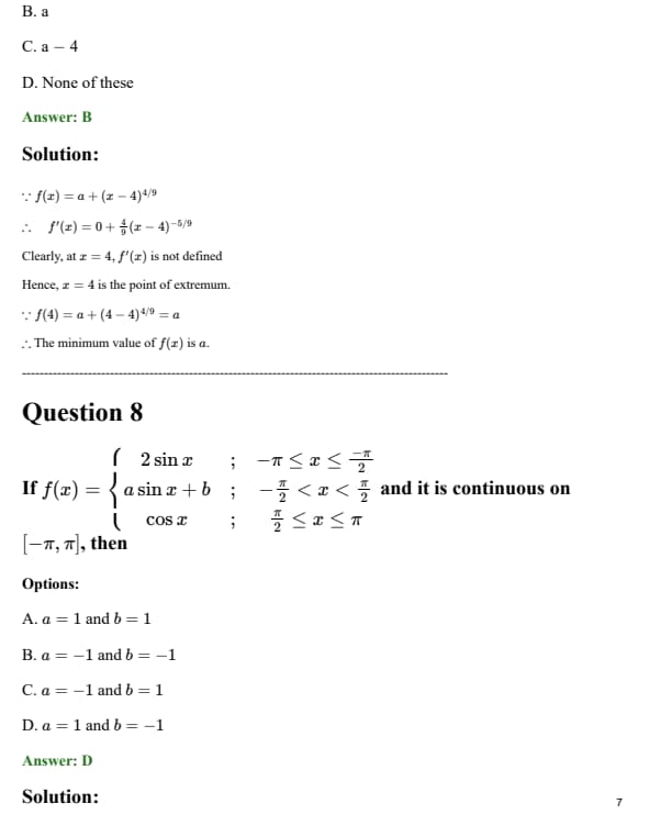 a \sin x + b & for \ -\frac{\pi}{2} < x < \frac{\pi}{2},