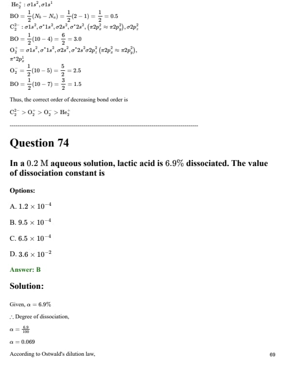 In a 0.2 M aqueous solution, lactic acid is 6.9% dissociated. The value of dissociation constant is