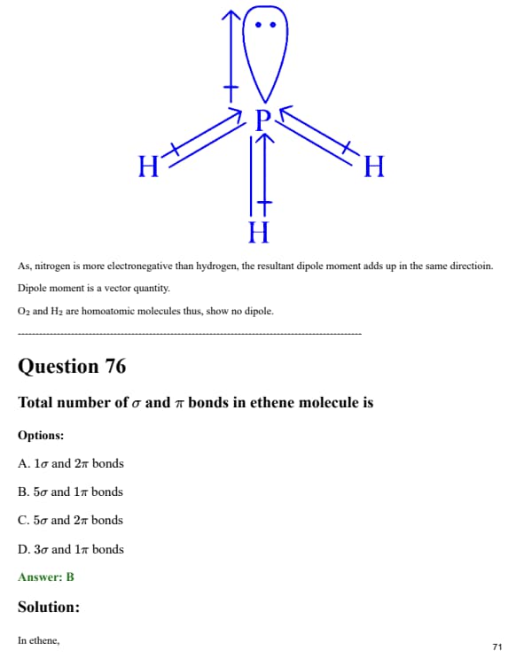 Total number of \(\sigma\) and \(\pi\) bonds in ethene molecule is