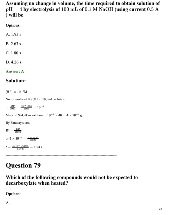 Assuming no change in volume, the time required to obtain solution of pH = 4 by electrolysis of 100 mL of 0.1 M NaOH (using current 0.5 A) will be