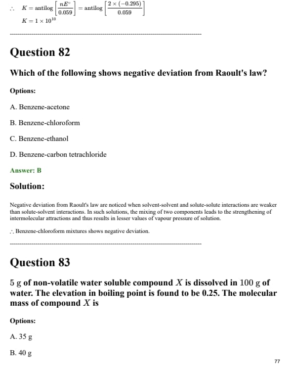 5 g of non-volatile water soluble compound X is dissolved in 100 g of water. The elevation in boiling point is found to be 0.25. The molecular mass of compound X is