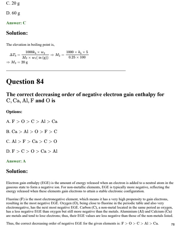 The correct decreasing order of negative electron gain enthalpy for C, Ca, Al, F and O is