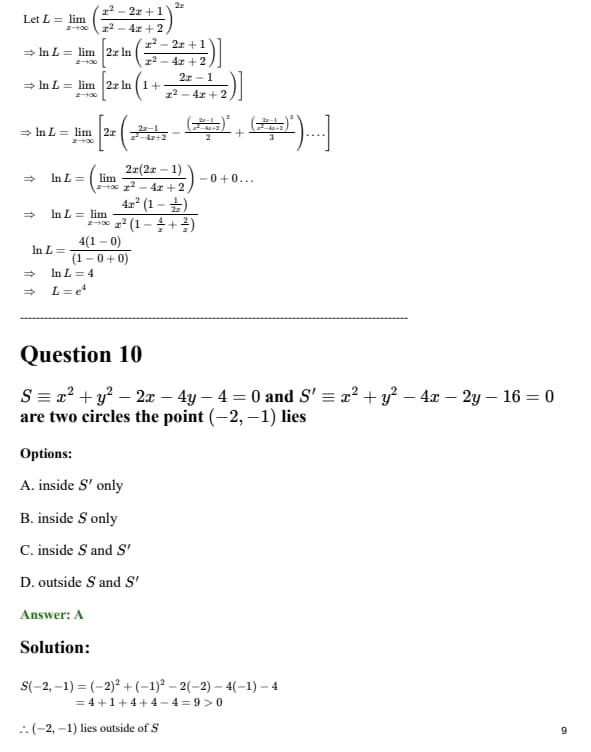 The value of \[ \lim_{x \to \infty} \left( \frac{x^2 - 2x + 1}{x^2 - 4x + 2} \right)^{2x} is \]