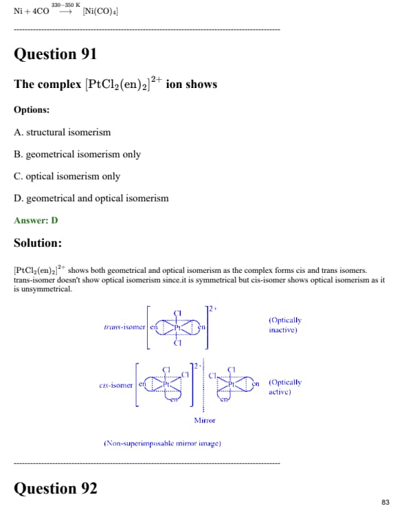 The complex \( [PtCl_2(en)_2]^{2+} \) ion shows