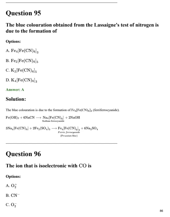 The blue colouration obtained from the Lassaigne's test of nitrogen is due to the formation of