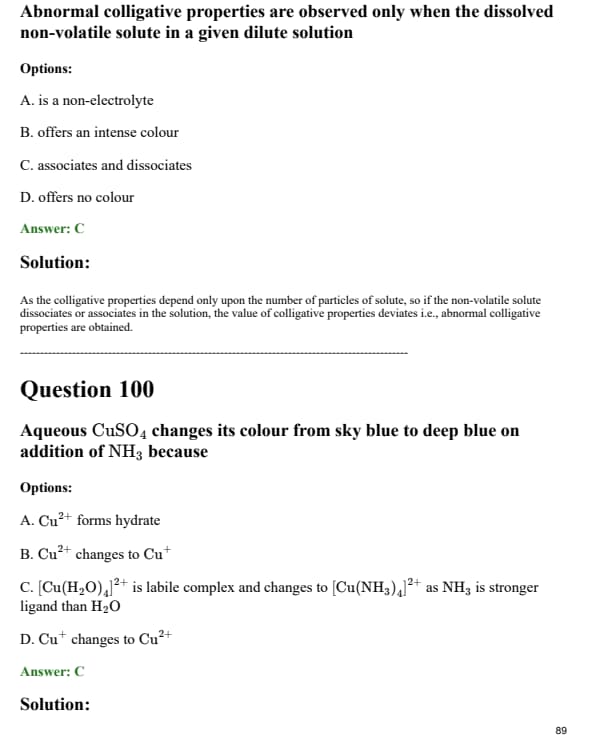 Aqueous CuSO\(_4\) changes its colour from sky blue to deep blue on addition of NH\(_3\) because