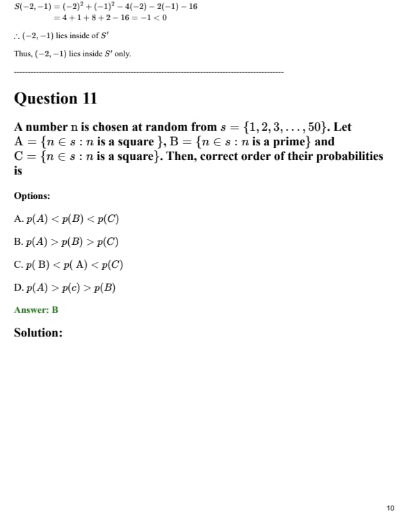 A number \( n \) is chosen at random from \( s = \{1, 2, 3, \dots, 50\} \). Let \( A = \{n \in s : n \text{ is a square} \} \), \( B = \{n \in s : n \text{ is a prime} \} \), and \( C = \{n \in s : n \text{ is a square} \} \).