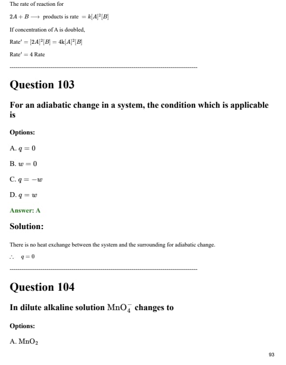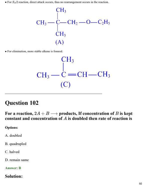 For a reaction, \( 2A + B \to products \), if concentration of B is kept constant and concentration of A is doubled, then rate of reaction is
