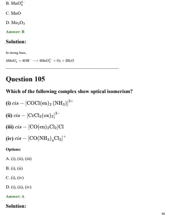 \[ (i) cis - [COCl(en)_2 (NH_3)]^{2+} \] \[ (ii) cis - [CrCl_2(ox)_2]^{3-} \] \[ (iii) cis - [CO(en)_2Cl_2]Cl \] \[ (iv) cis - [CO(NH_3)_4 Cl_2]^+ \]