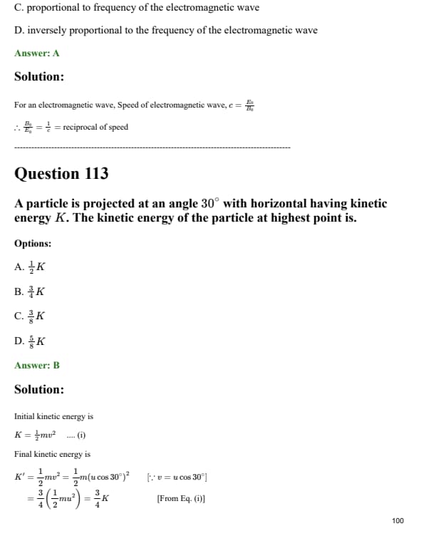 A particle is projected at an angle \(30^\circ\) with horizontal having kinetic energy \(K\). The kinetic energy of the particle at the highest point is.